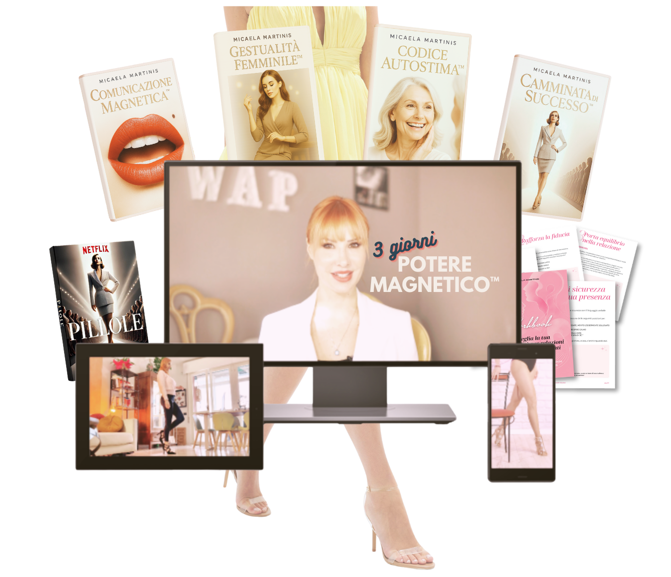 Mentre altri percorsi parlano di mindset, look o autostima, Potere Magnetico™ lavora direttamente sul tuo linguaggio del corpo — la prima cosa che il mondo percepisce di te, sulla tua mente e sulla tua energia femminile nascosta.